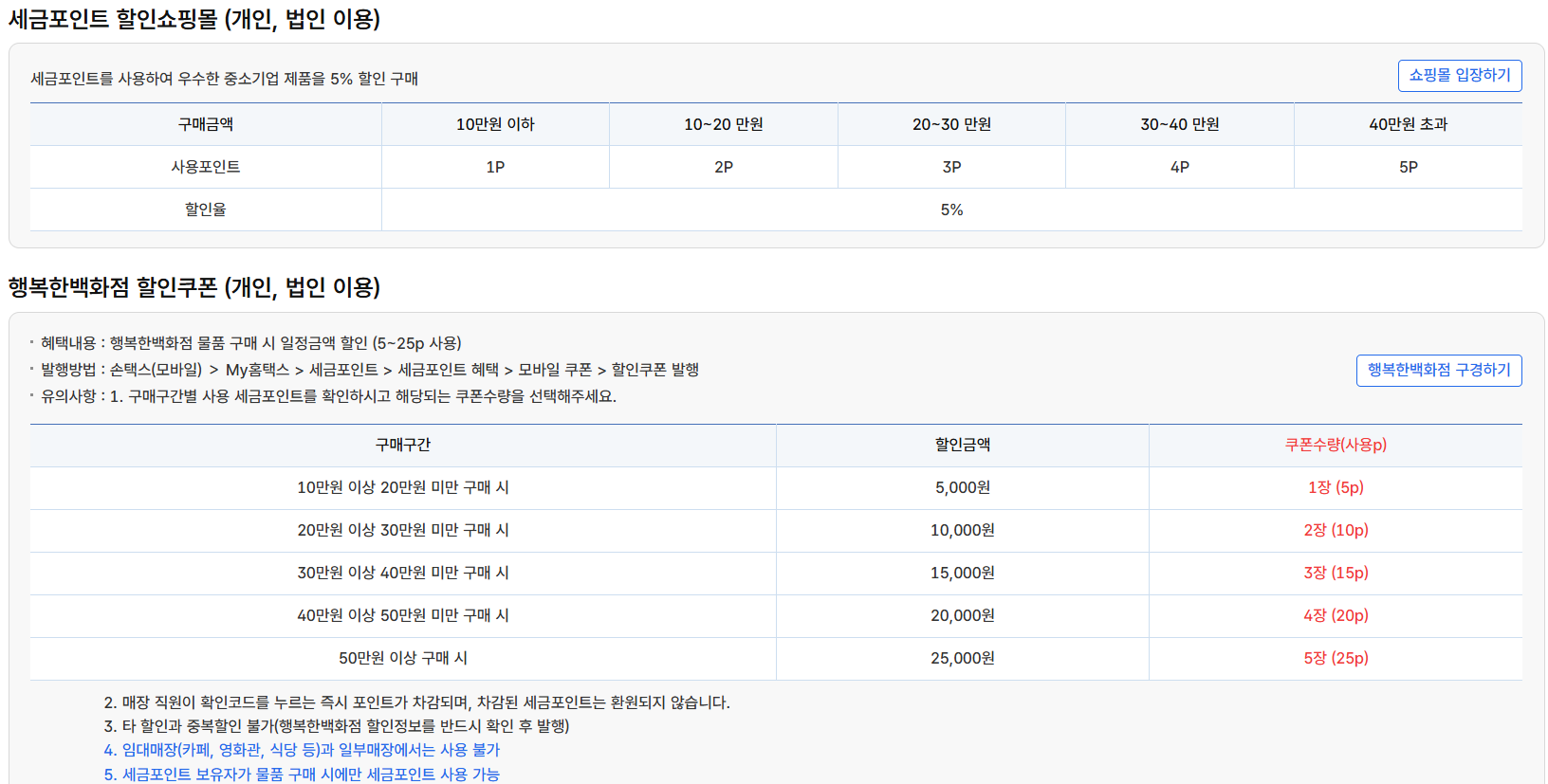 2. 사용 대상 및 조건: 일부 혜택은 특정 납세자 그룹에 한정될 수 있습니다.